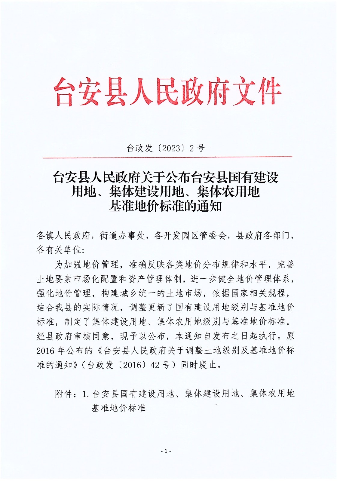 【通知】台安县人民政府关于公布台安县国有建设用地、集体建设用地、集体农用地基准地价标准的通知-空间规划-台安县人民政府