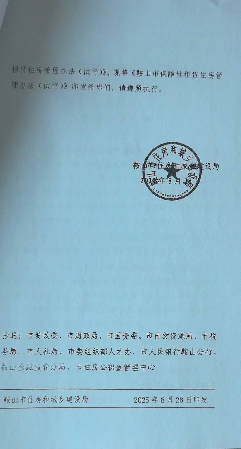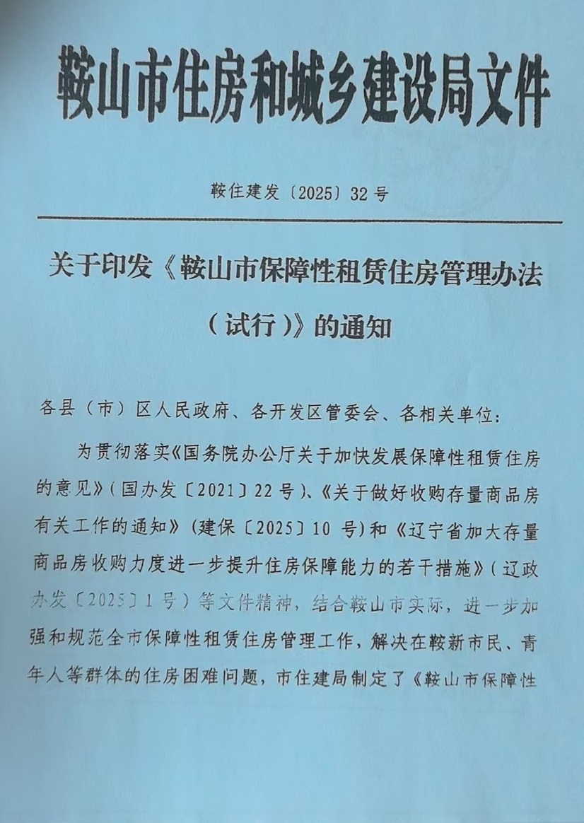关于印发《鞍山市保障性租赁住房管理办法 (试行 )》的通知-保障性住房-台安县人民政府